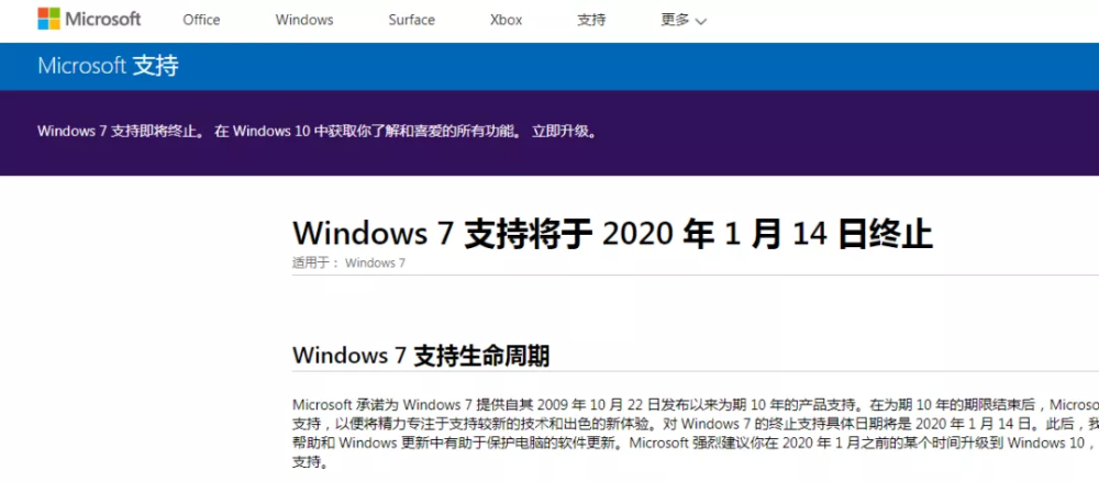 2009年,Windows 7(以下简称Win7)正式发布,因其对硬件配置的要求并不高,成为当时众多主流机型的选择。一晃眼,十年过去了。 2020年1月14日,Win7将正式退出历史舞台,微软会从这一天起停止对该系统的维护服务。微软在今年3月就正式宣布了这个消息,给足了用户考虑和选择的时间。 微软表示,用户仍可以继续使用运行Win7的电脑,但如果没有持续软件和安全更新,电脑遭受病毒和恶意软件攻击的风险会更大。 事实上,微软此举旨在让更多的用户转投Windows 10(简称Win10)。 丨Win7还能用,就是不再提供支持 近日,微软宣布,将于2020年1月14日起停止对Windows 7的支持,并建议用户更新至Windows 10系统。 在官网一则简短的声明中,微软称:“2020年1月14日之后,微软将不再为安装Windows 7的电脑提供安全升级或支持。立即升级到Windows 10,以保持您的员工的生产力和安全。” 对Win7终止支持后,你的电脑还可以继续工作,但是将不再提供以下内容: 任何问题的技术支持; 软件更新; 安全更新或修复。 微软称,如果没有持续软件和安全更新,电脑遭受病毒和恶意软件攻击的风险会更大。从目前开始,保持安全的最好方式是采用Win10。虽然可以在旧设备上安装Wind10,但这不是建议做法。使用新电脑是体验Wind10的最好方式。 图片来源:微软官网 当前用户如果想要安全地沿用Win7,就需要付费购买安全补丁,专业版每台设备收费50美元(约350元人民币),企业和机构用户可延期三年,补丁价格会逐年递增。 市场调研机构NetMarketShare发布的11月数据显示,目前全球Win10市场份额为53.33%,而Wind7则为26.86%。甚至一些用户仍在使用年迈的Windows XP操作系统(市场份额1.85%)。 图片来源:NetMarketShare Win10系统在2015年7月29日正式上市,在2018年12月,Win10的市场份额才达到39.22%,第一次超过当时占据36.9%的Win7,这时距离Win10发布已经过去了三年多。 丨Win10系统吐槽多 Windows 7是Windows系统中口碑比较好的一个版本。虽然微软早早就在鼓励用户升级至Windows 10系统,但仍然有大量消费者以“难用”为由拒绝升级。 Windows 7的前任版本是Windows Vista,是微软改动最大的Windows系统之一,它奠定了后续Windows系统的基础。然而由于开发日程紧张,Vista在2006年底上市后出现了大量问题。3年后的Windows 7着重改进了Vista出现问题的地方,以稳定和流畅的系统挽回了消费者的心。 在外界看来,Win10尚未完全替代Win7主要因为自身的各种Bug,例如其自动更新次数频繁,且更新还可导致闪存文件丢失等一系列问题。在Win10今年十一月更新的版本中,用户搜索文件会致使文件浏览器的搜索栏无响应,并且无法在搜索窗格中右键单击,这引起了许多人的抱怨。 总而言之,Win10系统的稳定性仍是用户长期诟病的对象,在图像显示和硬件配置等方面的兼容性也有待提升。 今年一月,微软发布消息称,已经对4.1万款软件进行测试,win10不兼容的软件仅有49款,换言之在微软给出的数据中只有0.1%的软件与win10存在兼容性问题。但这并不代表win7的忠实用户会买win10的帐。 在国内,桌面电脑操作系统还是Win7的天下。百度统计流量研究院的最新数据显示,Win7仍然占据了58.5%的份额,接近6成市场,Win10系统份额为21.68%。其次是XP系统,份额为6.73%。 图片来源:百度统计流量研究院 值得注意的是,Wind7上市的2009年,智能手机的潮流已经到来,世界也开始了从传统互联网向移动互联网的时代转型,移动设备系统成为了iOS和安卓的天下。Wind10中,可以看到微软让Windows操作系统兼容桌面端和移动端的努力,不过在移动领域,微软依旧任重道远。